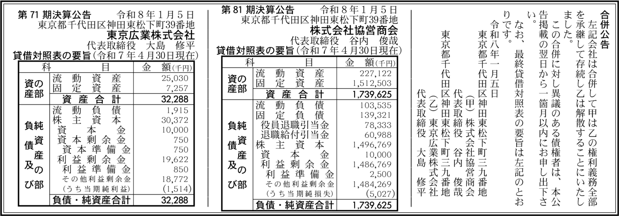 東京広業株式会社 東京都千代田区 【2025年4月期】 |