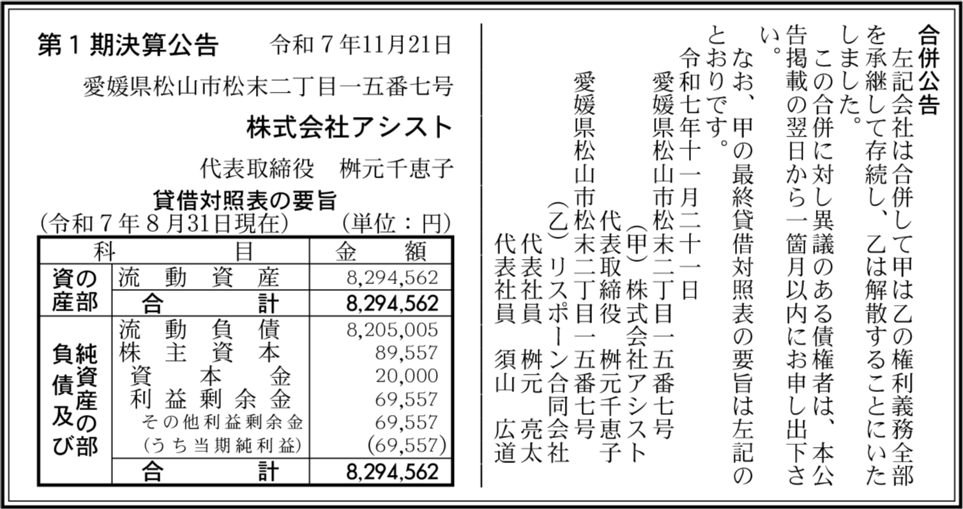 アトム総合企画株式会社 愛媛県松山市 【2024年11月期】 |