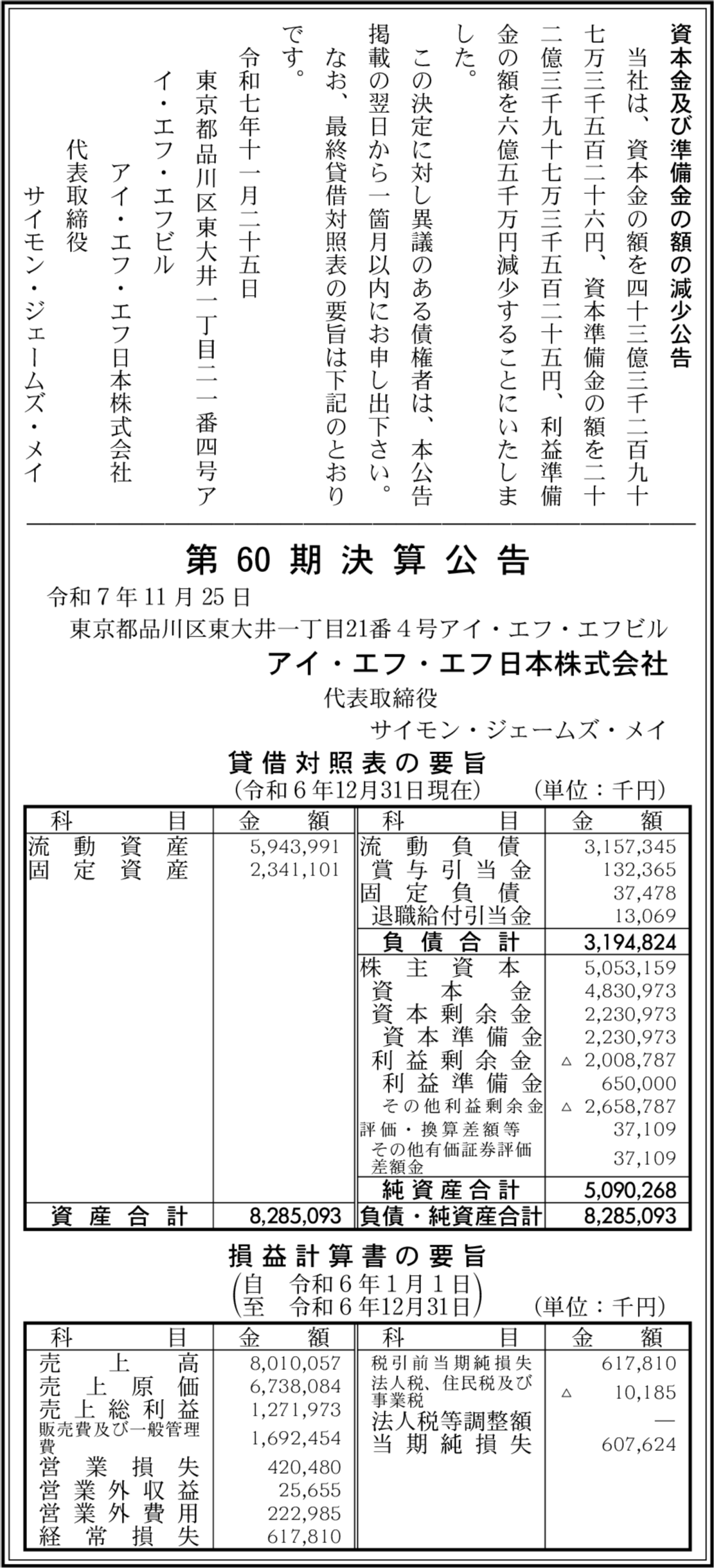 | 会社名 | アイ・エフ・エフ日本株式会社 |
