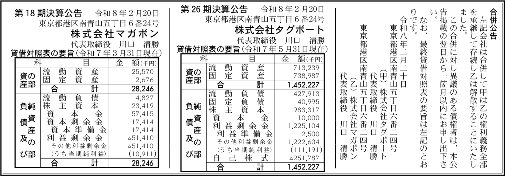 株式会社マガボン 東京都港区 【2025年3月期】 |