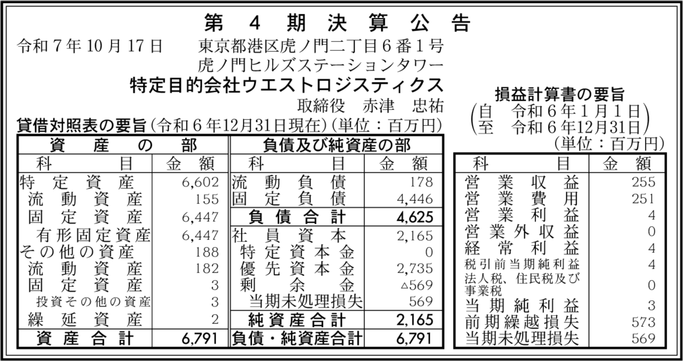 特定目的会社レジプロパティーズフォー 東京都港区 【2024年12月期】 |