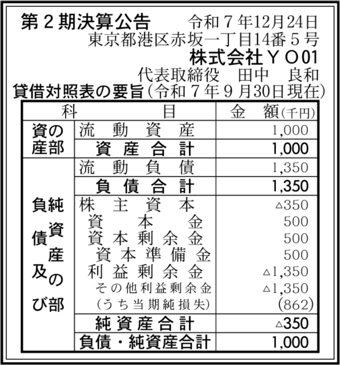 | 会社名 | 株式会社YO01 |