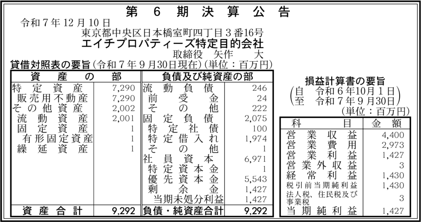 | 会社名 | エイチプロパティーズ特定目的会社 |