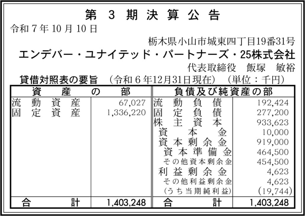 会社名 | エンデバー・ユナイテッド・パートナーズ・25株式会社 |
