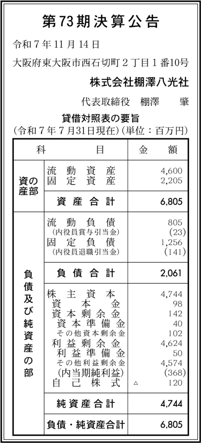 | 純資産 | 47億4,400万円 (+7.94%) |