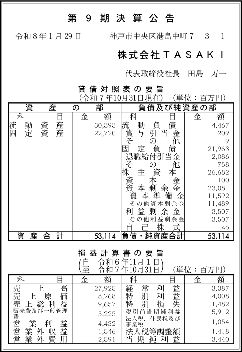 株式会社TASAKIホールディングス 東京都千代田区 【2023年12月期】 |
