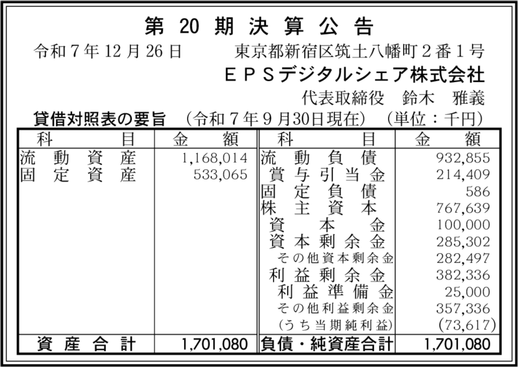 株式会社EPNextS 東京都新宿区 【2025年9月期】 |