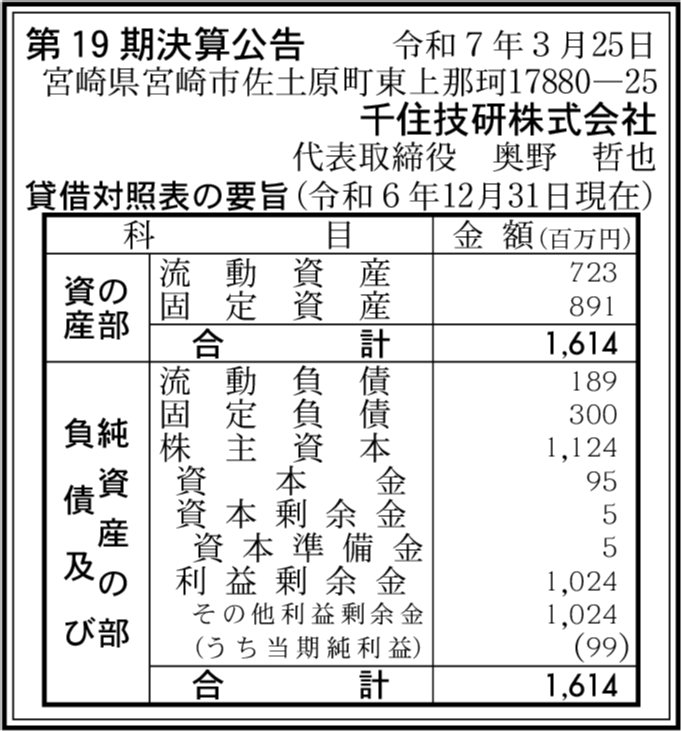 千住電子工業株式会社 岩手県一関市 【2024年12月期】 |