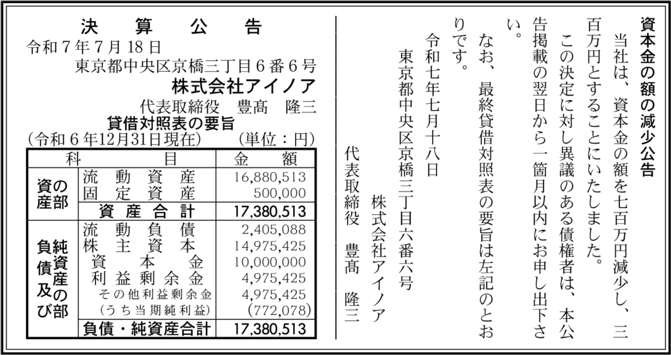 | 会社名 | 株式会社アイノア |