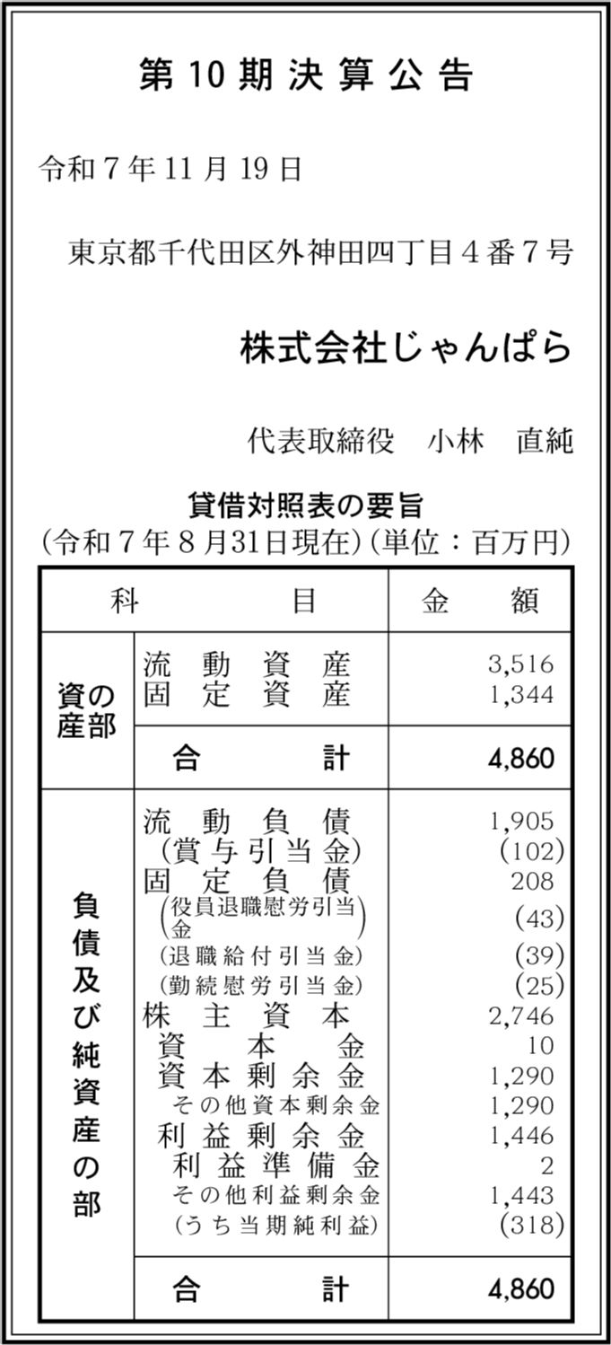 | 会社名 | 株式会社じゃんぱら |