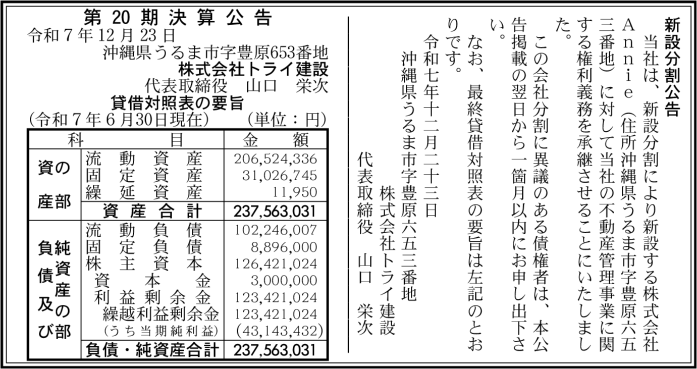 株式会社トライアングル.evo 沖縄県うるま市 【2025年3月期】 |
