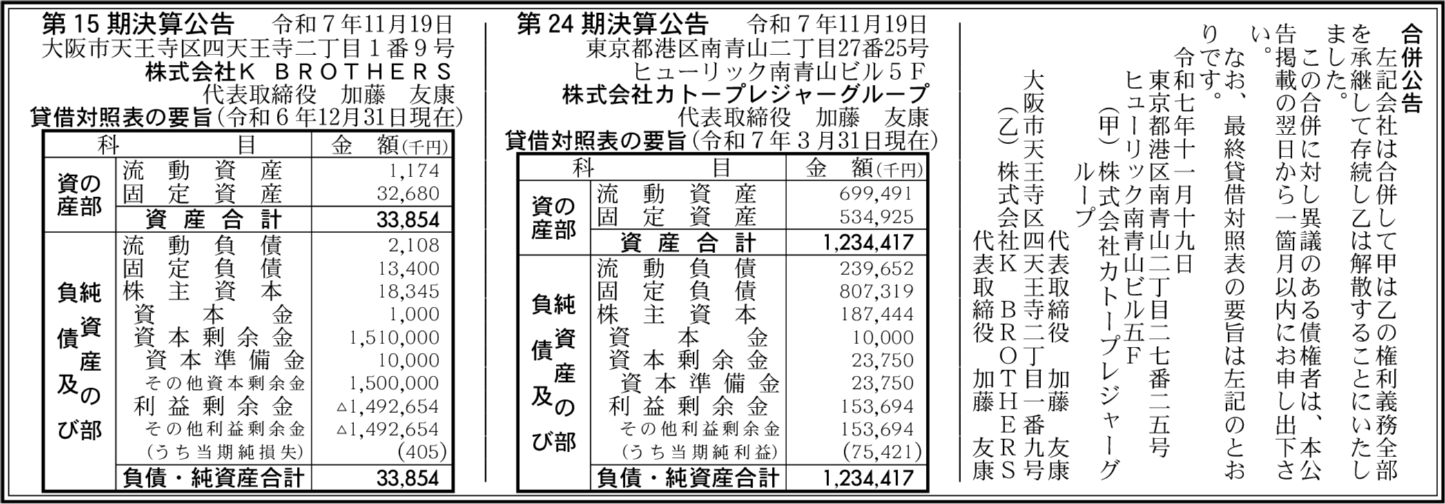 株式会社K BROTHERS 大阪市天王寺区 【2024年12月期】 |