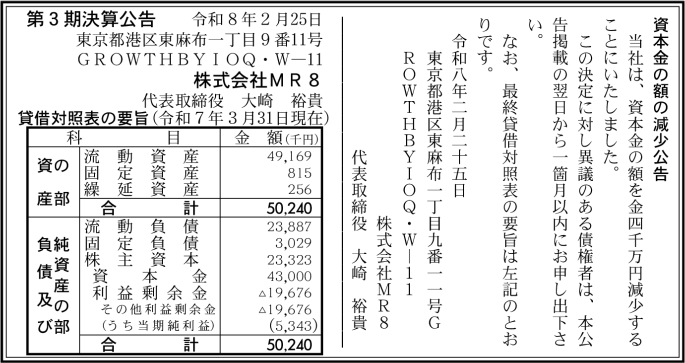 | 会社名 | 株式会社MR8 |