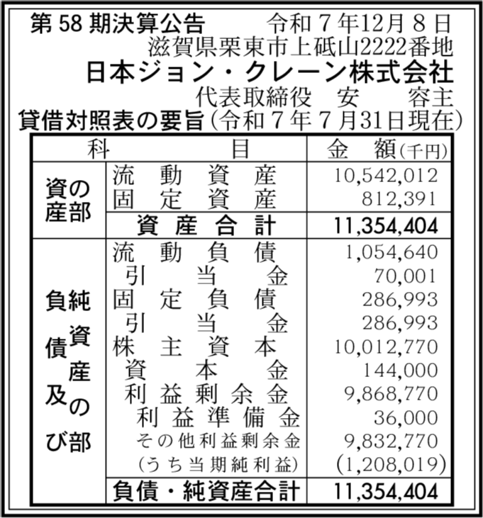 | 決算末日 | 2025年07月31日 |