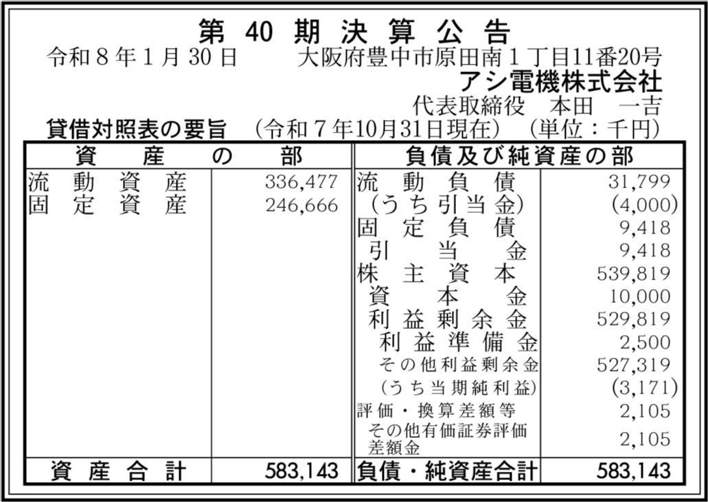 | 会社名 | アシ電機株式会社 |