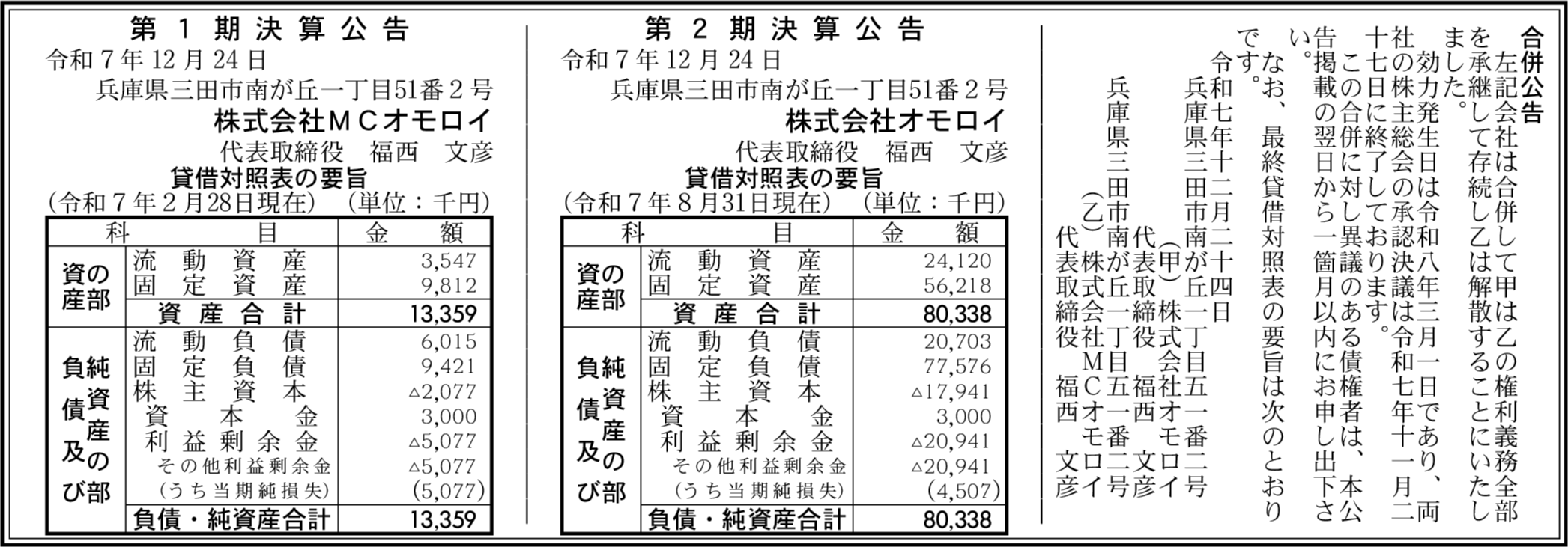 株式会社オモロイ 兵庫県三田市 【2025年8月期】 |