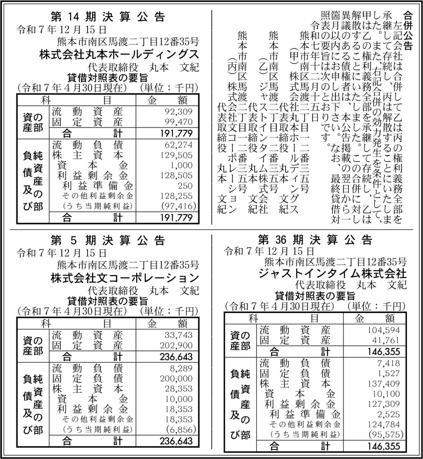 株式会社丸本ホールディングス 熊本市南区 【2025年4月期】 |