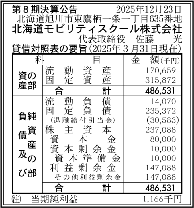 | 会社名 | 北海道モビリティスクール株式会社 |