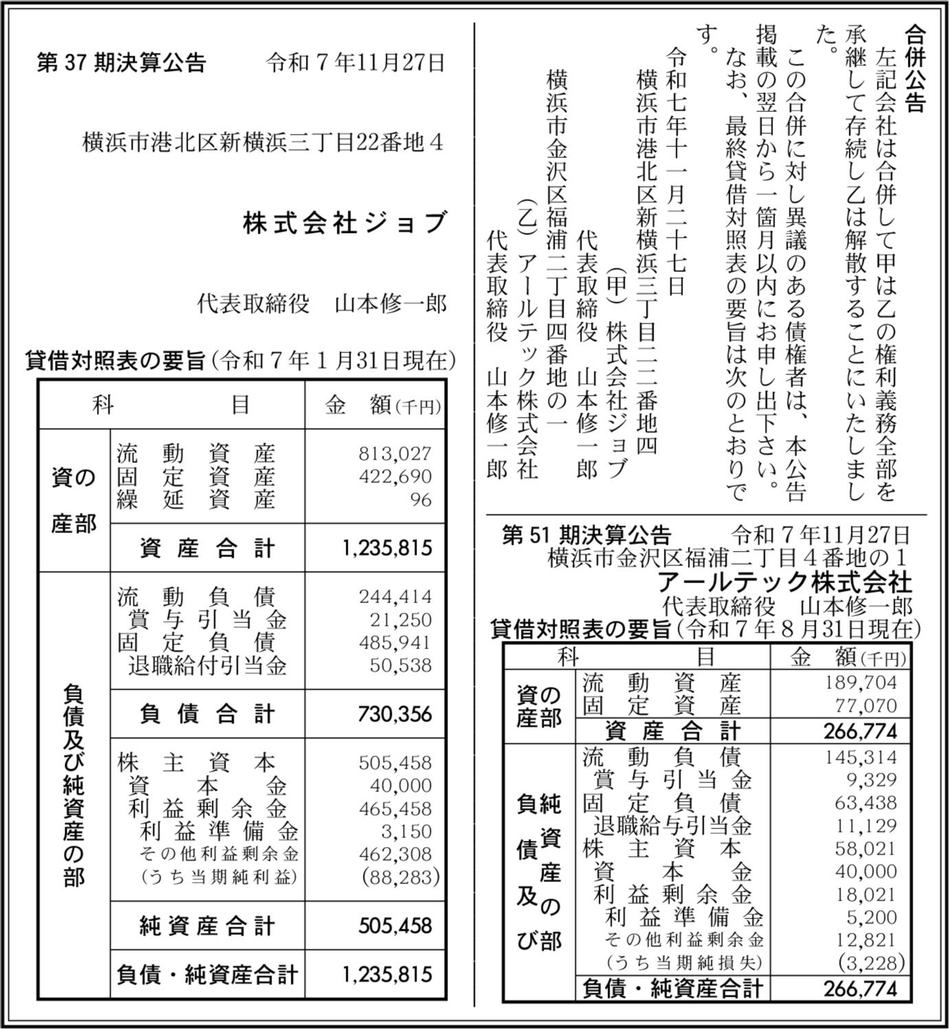 アールテック株式会社 横浜市金沢区 【2025年8月期】 |