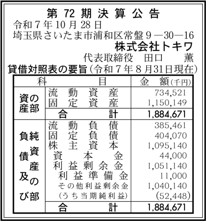 株式会社リアン・フォー閉鎖済み 埼玉県さいたま市浦和区 【2024年8月期】 |