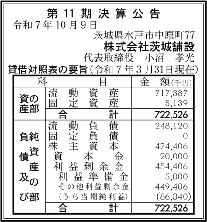 いばらき中央建設株式会社 茨城県水戸市 【2025年3月期】 |