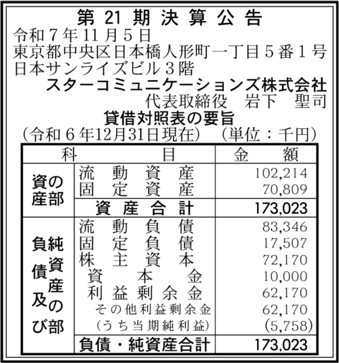 | 会社名 | スターコミュニケーションズ株式会社 |