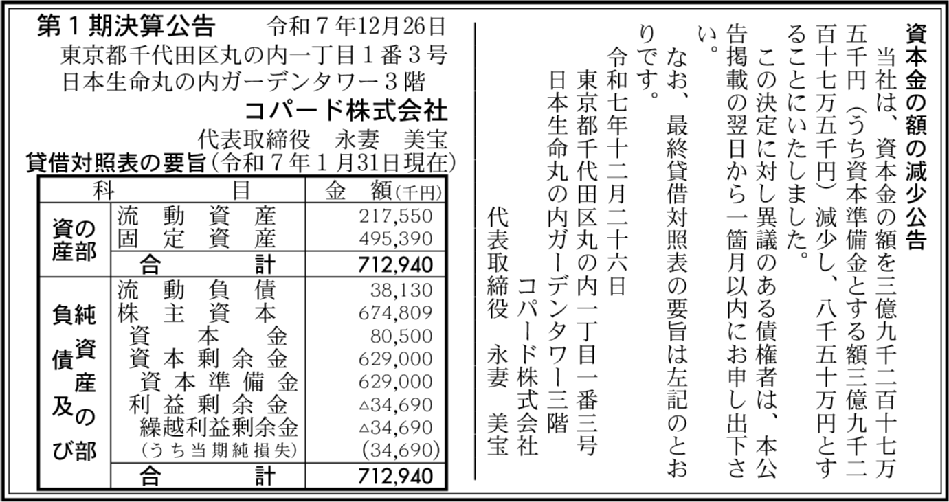 株式会社コハラビル 東京都千代田区 【2025年9月期】 |