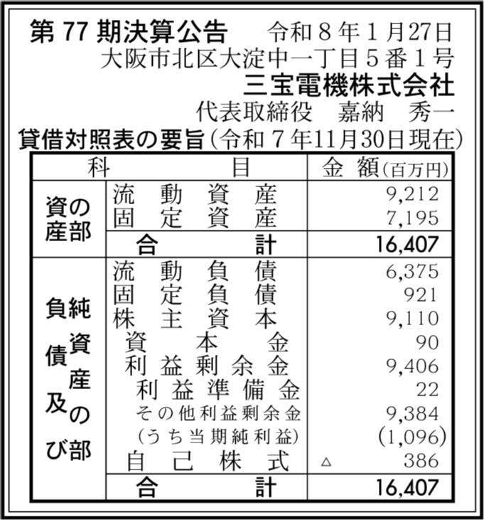 三宝エンジニアリング株式会社 大阪市北区 【2024年12月期】 |
