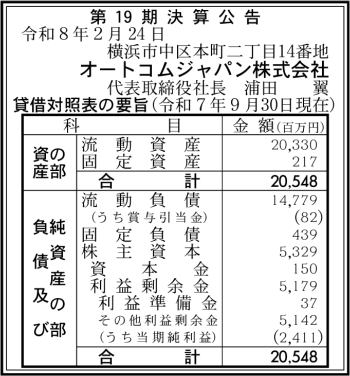 | 総資産 | 205億4,800万円 (+25.95%) |