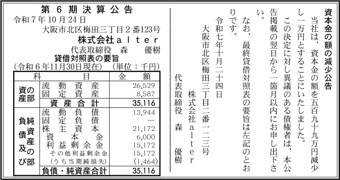 | 会社名 | 株式会社alter |