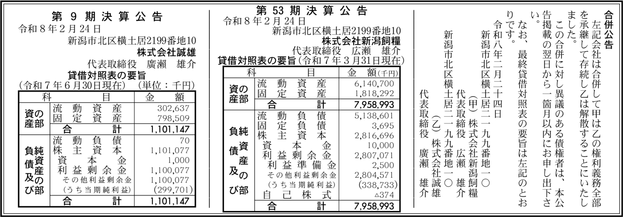 株式会社誠雄 新潟市北区 【2025年6月期】 |