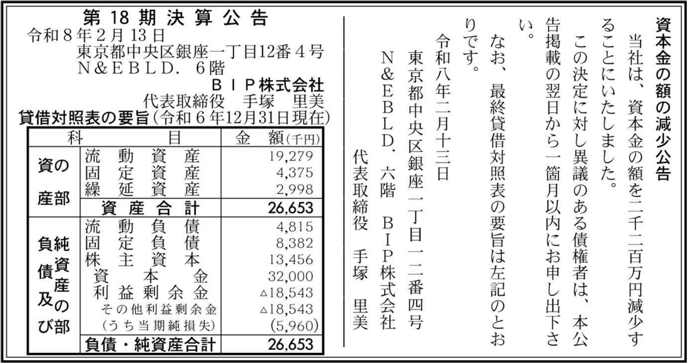 | 会社名 | BIP株式会社 |