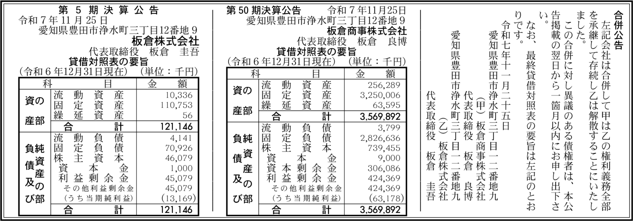 板倉商事株式会社 愛知県豊田市 【2024年12月期】 |