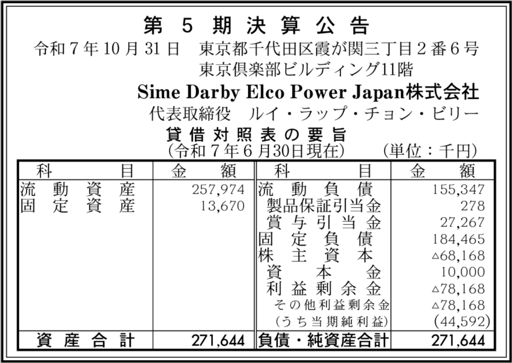 | 会社名 | Sime Darby Elco Power Japan株式会社 |