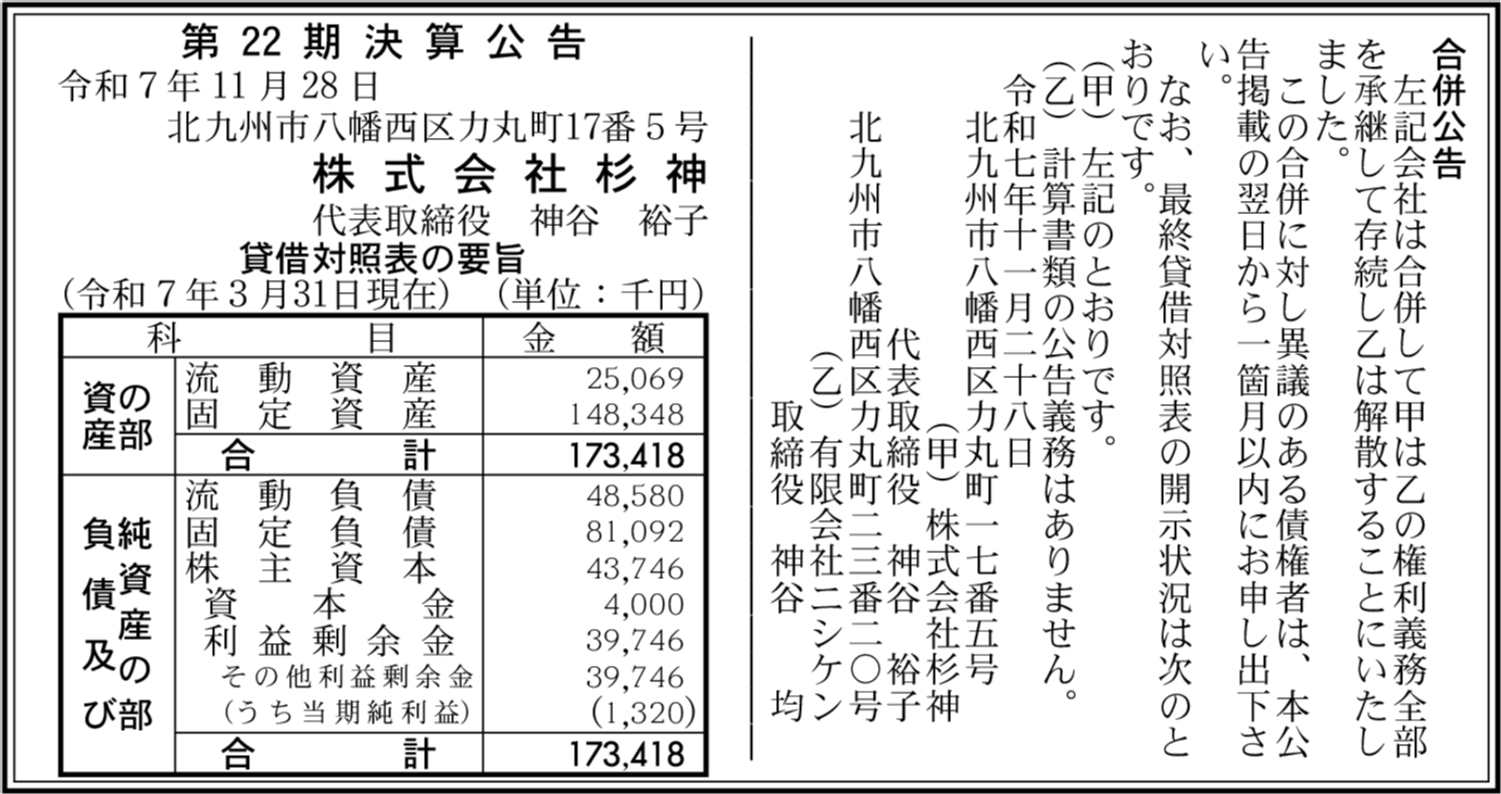 | 会社名 | 株式会社杉神 |