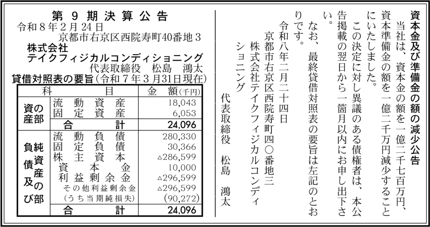 | 会社名 | 株式会社テイクフィジカルコンディショニング |