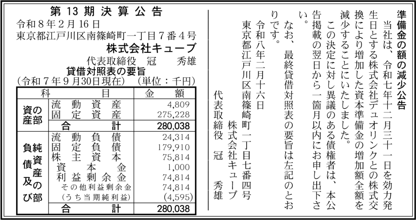 | 会社名 | 株式会社キューブ |
