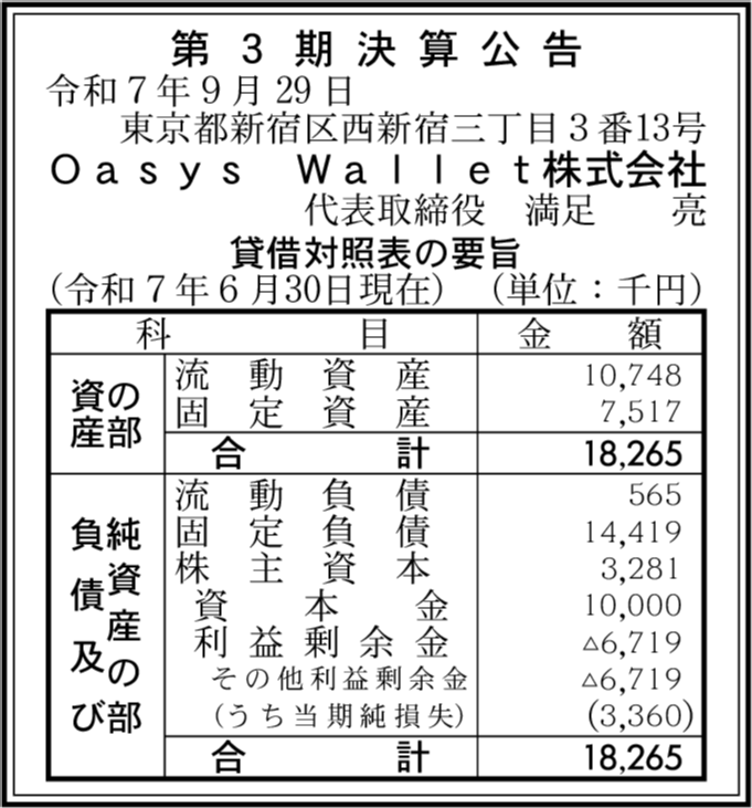 利益剰余金 | △671万9,000円 (赤字拡大) |