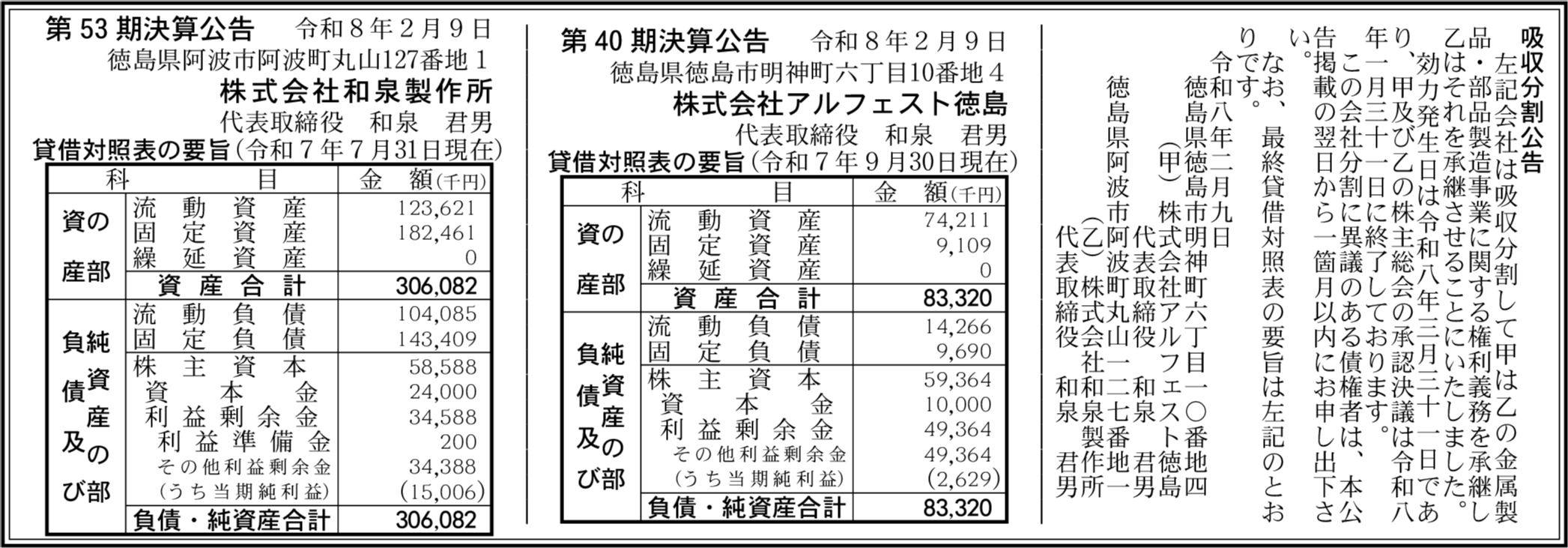 株式会社アルフェスト徳島 徳島県徳島市 【2025年9月期】 |