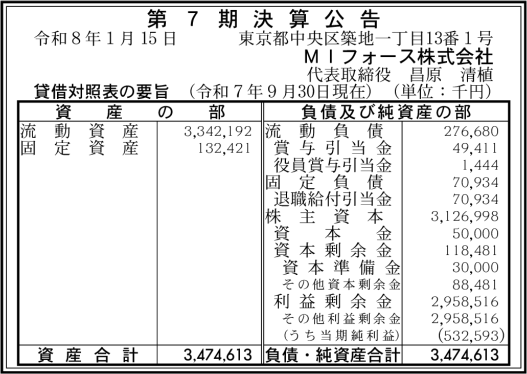 | 会社名 | MIフォース株式会社 |