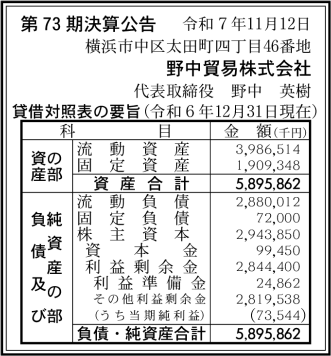| 総資産 | 58億9,586万2,000円 (▲3.09%) |