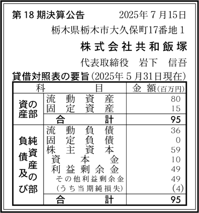 栃木新斎場整備運営株式会社 栃木県栃木市 【2025年3月期】 |