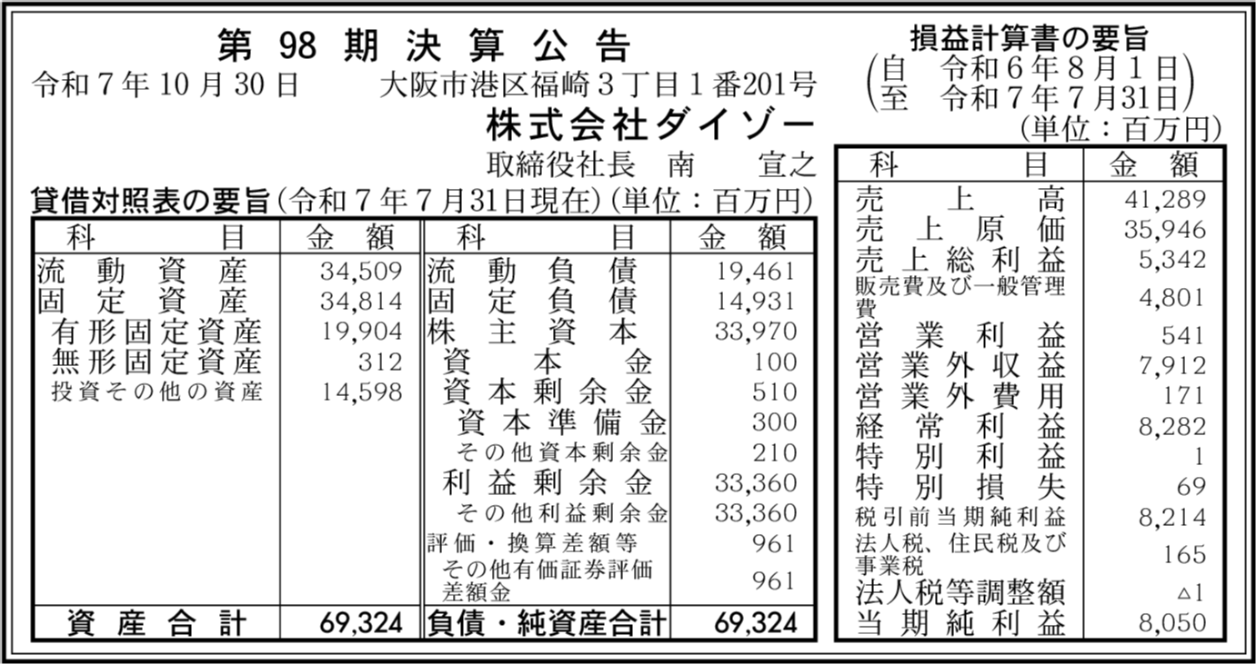 | 株式会社大阪港貿易サービスセンター 大阪市港区 【2025年2月期】 | 3,028万円 | 1億8,779万円 | 2億1,334万4,000円 |