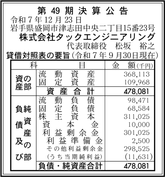 株式会社東京土地開発閉鎖済み 岩手県盛岡市 【2024年11月期】 |