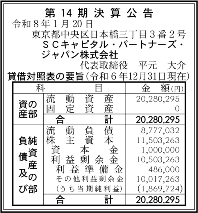 | 会社名 | SCキャピタル・パートナーズ・ジャパン株式会社 |