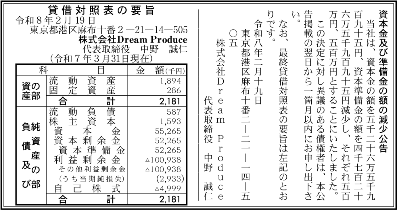 | 会社名 | 株式会社Dream Produce |