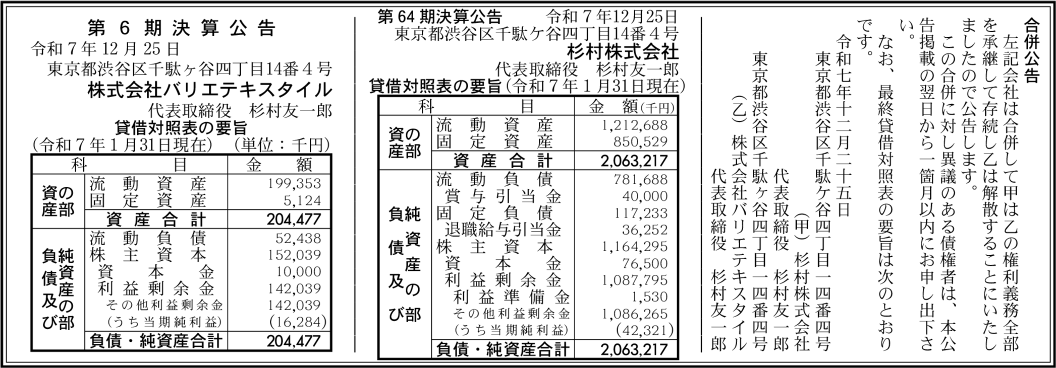 株式会社バリエテキスタイル 東京都渋谷区 【2025年1月期】 |
