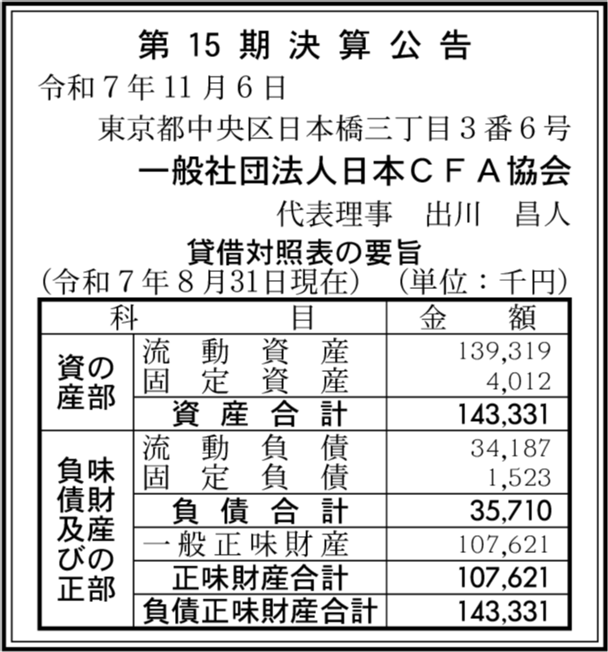 | 会社名 | 一般社団法人日本CFA協会 |