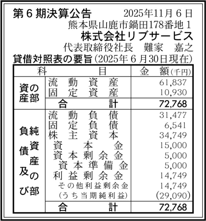 | 会社名 | 株式会社リブサービス |
