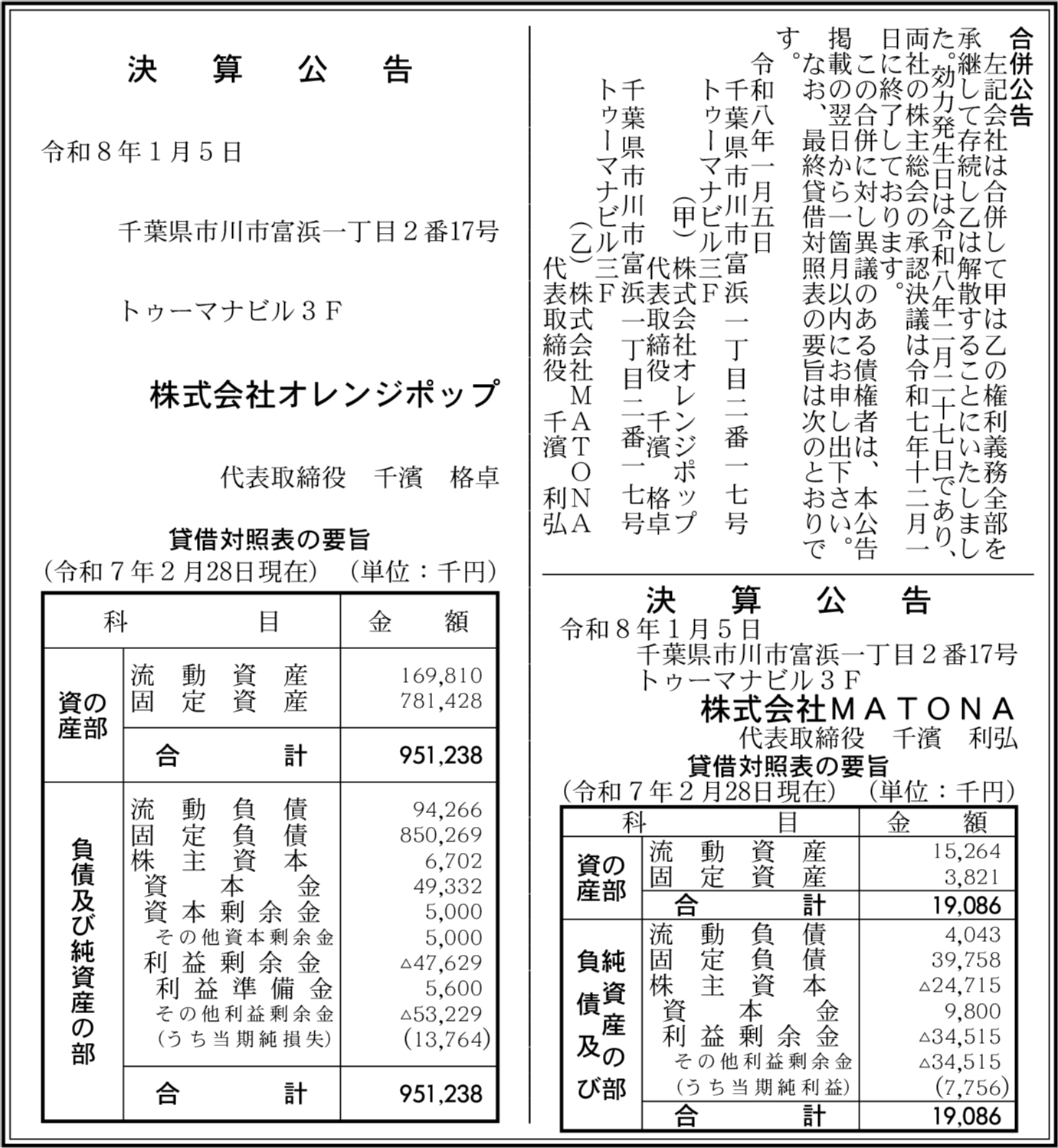 株式会社オレンジポップ 千葉県市川市 【2025年2月期】 |